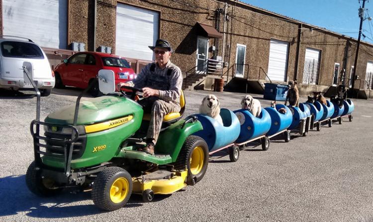 “Un giorno ho visto un ragazzo con un trattore a cui aveva attaccato dei carretti per trasportare pietre. Ho pensato, ‘Ecco, quello sarebbe un perfetto trenino per cani.”